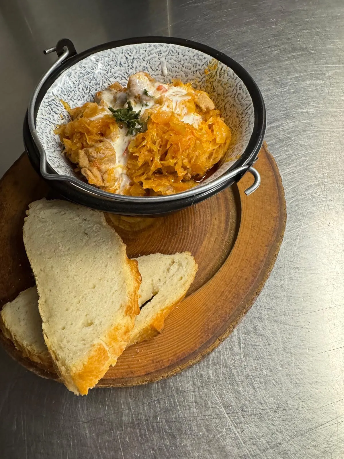 Herzhaftes Sauerkrautgericht mit geschmortem Schweinefleisch und Wurst, deftig gewürzt – ein Klassiker der Siebenbürger Bauernküche.